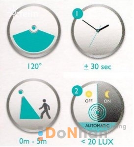 Bộ đèn tự động tắt sau 30s nếu không phát hiện chuyển động Cảm biến có thể hoạt động ở nhiệt độ -10-40 độ, độ ẩm <=75 độ
